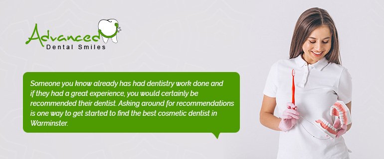 Are you new to Warminster? Are you looking for the best cosmetic dentist around you? Look no further as Advanced Dental Smiles is what you are looking for! We know that finding the best dental treatment can be very daunting especially when you are new. However, we have tips for you on how to find the best cosmetic dentist in Warminster.